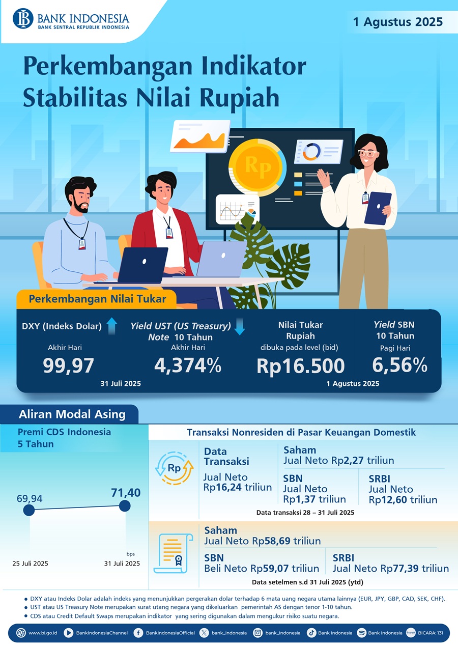 Perkembangan Indikator Stabilitas Nilai Rupiah (1 Agustus 2025)